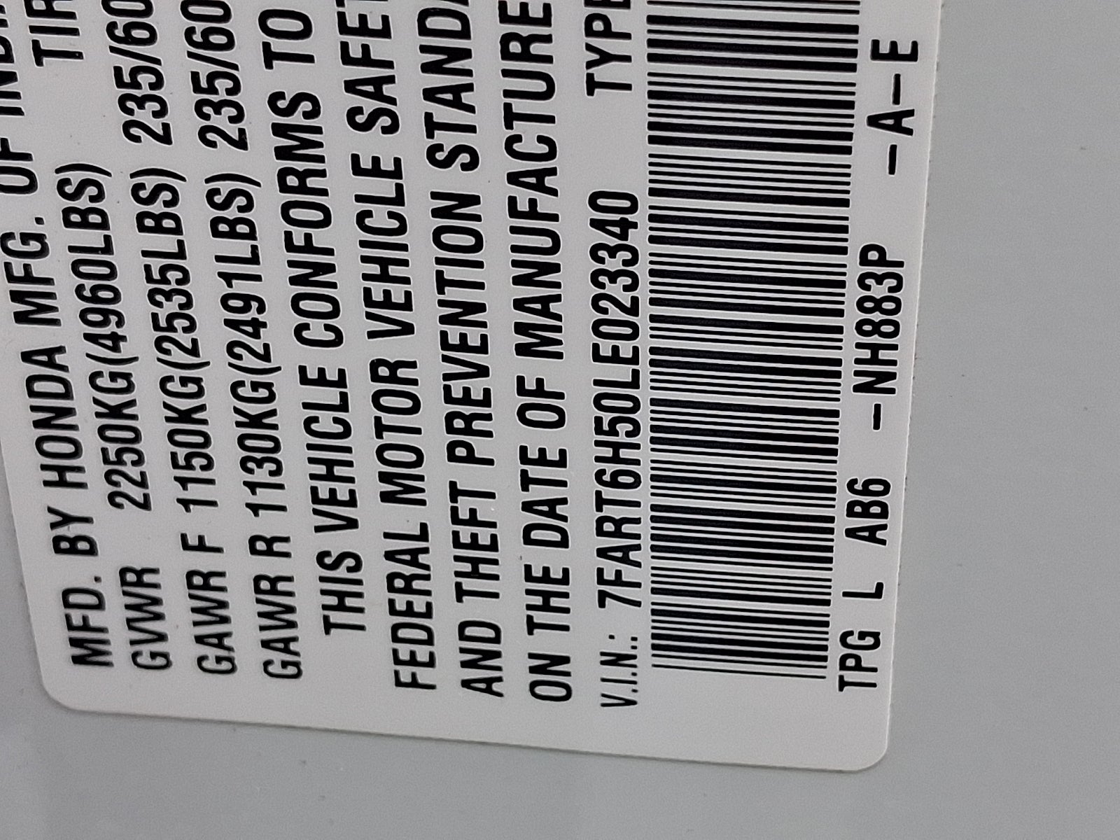 - Tires: 235/60R18 103H All-Season